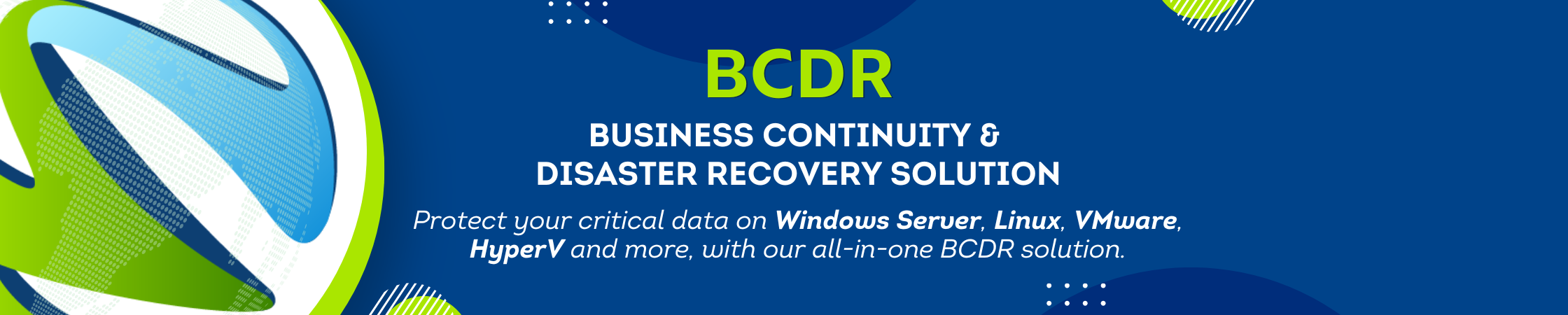 This solution aims to provide full Business Continuity and Disaster Recovery (BCDR) in one single solution. Our BCDR solution stands apart from traditional backup and recovery systems with its cloud-first approach. It offers a comprehensive, all-in-one platform that combines local backup and data recovery with a secure, cloud-based repository and full disaster recovery in the cloud. Its cross-platform support enables organizations to protect their data anywhere it lives, from physical servers to virtual machines running Windows Server or Linux.