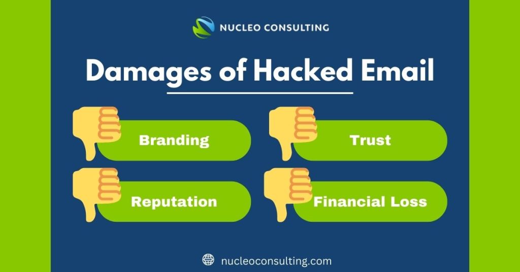 No matter work or personal email, the damages of a compromised email account is destructive. Cybercriminals can access hacked emails to get their hands on sensitive information which they could use to access other online accounts. They can also use the hacked email account to send out phishing emails to your clients, suppliers, colleagues, and other business partners.