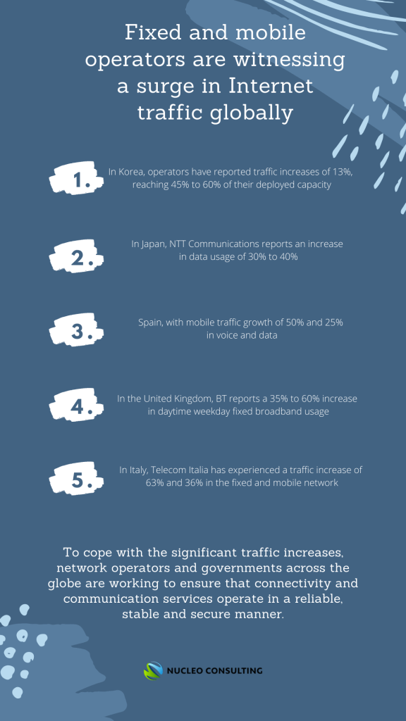 - Since the start of the COVID-19 crisis, demand for broadband communication services has soared, with some operators experiencing as much as a 60% increase in Internet traffic compared to before the crisis.
