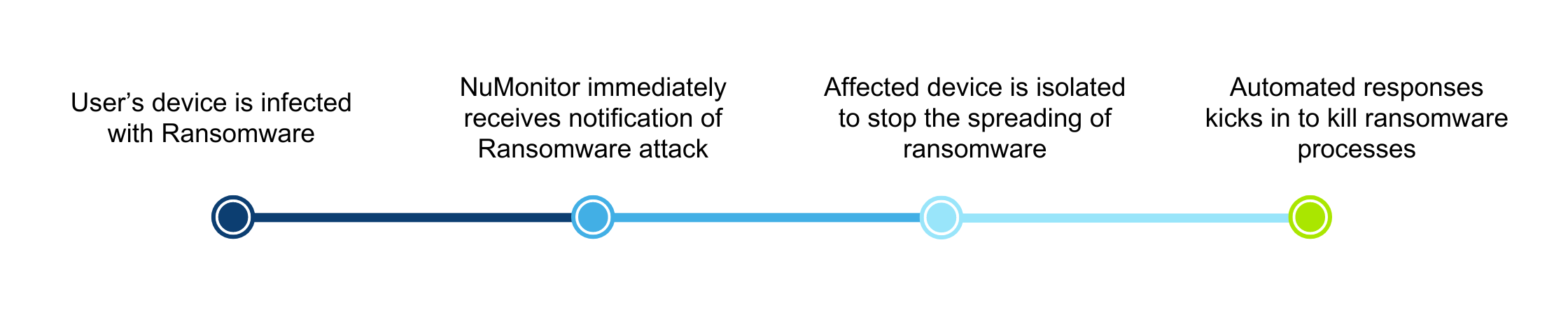 Network isolation and remote access enable technicians to swiftly neutralize ransomware threats before the user returns to the company and spreads the ransomware across the company’s network. With ransomware detection in place, automatic responses kick in to kill the ransomware process.