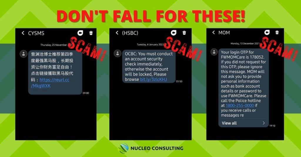 According to the Singapore Police Force (SPF), victims would receive an SMS with embedded URL link, claiming that there were issues with their bank account. Victims would then have to click on this fake link, where they would be asked to provide their mobile banking details to log in and rectify the issue. Victims only realized being scammed after receiving notifications regarding unauthorized charges to their bank accounts.