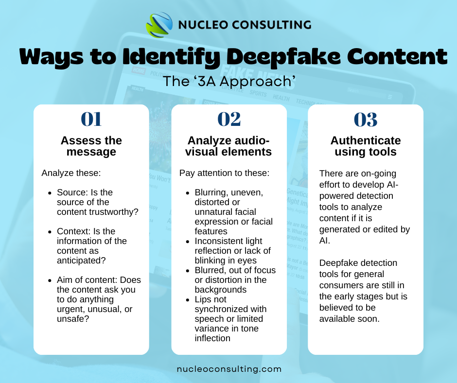 By following the 3A approach, individuals can effectively detect deepfakes and mitigate the spread of falsified content.