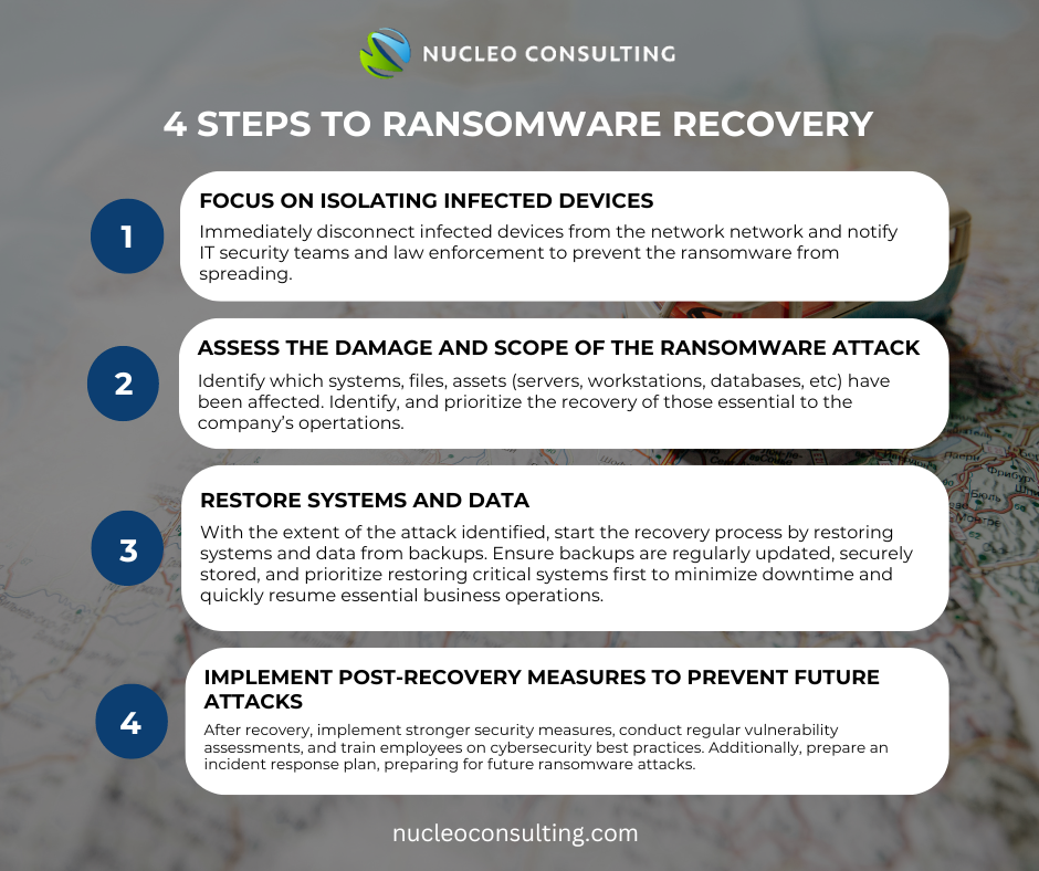Confronting a ransomware attack can be daunting, however, the recovery process is not impossible. To simplify this process, here are four steps to guide you through the ransomware recovery process: